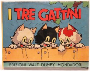 DISNEY (Walt). I tre gattini. Verona, Mondadori, 1937. In-8 oblong, cartonnage illustré de l'éditeur, jaquette. …