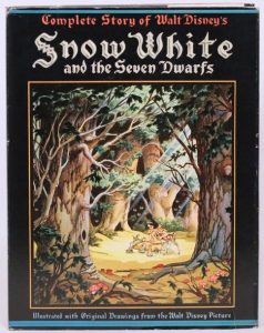 Snow White and the Seven Dwarfs. New York, Grosset & Dunlap, 1938. In-4, cartonnage illustré de l'éditeur, jaquette. Seconde édition illustrée des dessins en noir et en couleurs tirés du film Disney sorti au cinéma en décembre 1937.