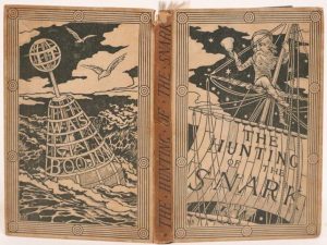 The hunting of the snark An agony, in eight fits. London, Macmillan and Co, 1876. In-12, cartonnage gris illustré de l'éditeur. Édition originale ornée de 9 illustrations en noir d'Henry Holiday et d'une carte vierge des océans.