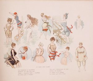 Album Mars. Mesdames les cyclistes. Paris, Plon, s.d. [vers 1900]. In-4, bradel demi-percaline verte, couverture (V. Champs). Album humoristique sur le cyclisme comprenant de nombreux dessins en noir et une illustration de couverture en couleurs.