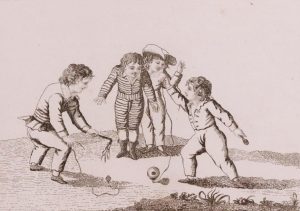 Les Jeux des jeunes garçons, représentés par vingt-quatre estampes. Paris, Nepveu, s.d. In-8 oblong, cartonnage brun de l'éditeur. Charmant ouvrage illustré de 24 gravures en noir de Noël Jeune.