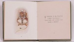 Ensemble 2 ouvrages de vers illustrés. Appley Dapply's nursery rhymes. London and New York, Frederick Warne & Co, s.d. [1917]. In-24, cartonnage vert illustré d'une souris en couleurs, titre en rouge (Reliure de l'éditeur). Édition originale illustrée de 14 dessins en couleurs de Beatrix Potter. L'une des dernières lettres adressées à son fiancé et éditeur Norman Warne concernait ce petit ouvrage. Après la mort de celui-ci en 1905, le livre est longtemps resté à l'état de projet abandonné, pour finalement voir le jour 12 ans plus tard.