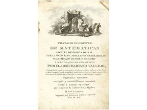 1821. (CIENCIAS). VALLEJO, JOSE MARIANO: TRATADO ELEMENTAL DE MATEMATICAS. TOMOS 1,2,4 y 5. Barcelona. Imp. del Gobierno politico superior, 1821. 8° mayor. XLVIII + 458 p., 1 h. Puntos de óxido. Enc. en plena piel, doble tejuelo, cortes pintados.