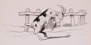 Le Bouc. Dessin original. S.d. Encre de Chine sur papier fort, 27 x 17 cm. Trois dessins à l'encre noire de Benjamin Rabier.