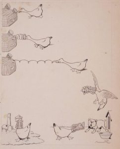 RABIER (Benjamin). L'Oie. Dessin original. S.d. Encre de Chine et crayon de papier bleu sur papier fort contrecollé …
