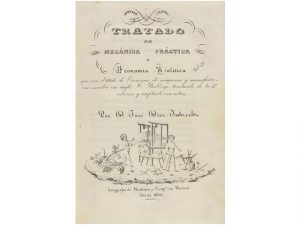 1835. (CIENCIAS). DIEZ IMBRECHTS, JOSE: TRATADO DE MECANICA PRACTICA Y ECONOMIA POLITICA que con el titulo de Economia de Màquinas y Manufacturas, escribió en inglés ... Madrid: Lit. de MArtinez y Comp., 1835. 8°. 356 p. Grabado litografico en...