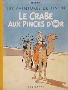 Le Crabe aux pinces d'or. 1944. Cartonné, dos jaune. Deuxième édition Casterman en couleurs.