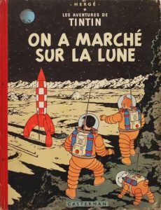 On a marché sur la Lune. 1954. Cartonné, dos rouge. Édition originale belge "1a" Casterman en couleurs.
