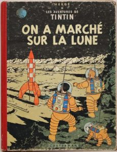 On a marché sur la Lune. 1955. Cartonné, dos rouge. Troisième édition Casterman en couleurs.