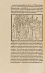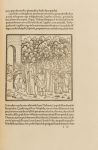 CENT SOIXANTE-DOUZE FIGURES GRAVÉES SUR BOIS ILLUSTRENT LE DÉROULEMENT DU RÉCIT. Toutes d'une surprenante beauté sont restées à ce jour anonymes. La lettre B au pied de l'une d'elles a permis l'attribution hasardeuse à Benedetto Bordone (après l'avoir été à Mantegna et à Giovanni Bellini). - Reproduction ci-contre. Le nom de l'auteur Francesco Colonna lui-même, toujours présumé, a été trouvé par hasard en mettant l'une après l'autre les trente-huit grandes lettrines qui sont en tête de chaque chapitre : « Poliam frater Francesco Columna peramavit ». Mais cette attribution est remise en cause.