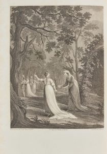 GRAND ET BEAU LIVRE ILLUSTRÉ AVEC UN RARE TALENT PAR UNE PERSONNALITÉ DE LA SOCIÉTÉ LONDONIENNE, LADY DIANA BEAUCLERC, fille du duc de Marlborough (1734-1808). Ses 24 compositions se divisent en 9 grands en-têtes, 6 culs-de-lampe et 9 hors-texte. Les délicats dessins rivalisant d'inspirations néo-classiques et pré-romantiques sont remarquablement gravés par Francesco Bartolozzi, artiste italien qui pratiquait le mezzotinte, procédé proche de la manière