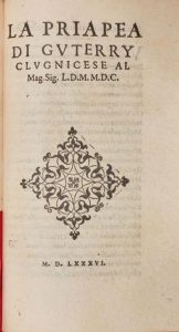 Éditions originales imprimées à Paris, en italien, de deux ouvrages piquants et curieux. Émile Picot a rappelé comment Guttery, de Cluny, avait dû se réfugier en Italie où il fit des études à Padoue. Il dédia La Camilletta à M. d'Alincourt, fils de Neuville de Villeroy qui était son protecteur. La Priapea (conversation surprise par l'auteur à Murano entre des courtisanes vénitiennes) doit se trouver à la suite mais a été supprimée dans tous les exemplaires rencontrés par Picot sauf un (celui-ci ?). Sa rareté était telle au début du XVIIIe siècle que La Monnoye, désespérant d'en trouver un, prit la peine de le copier lui-même (Cf catalogue Nodier, 1844, n° 1017) et É. Picot Les Français italianisants, tome II, p. 259 et suivantes. Manque à Adams.