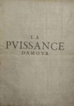 LA PUISSANCE D'AMOUR. Suivent six poèmes en alexandrins occupant chacun une page : « Les Momes », 16 vers ; « Les Mercures », 24 vers ; « Les Eunuques », 24 vers ; « Les Chastes Vestales », 24 vers ; « Vénus & Cupidon », 24 vers.