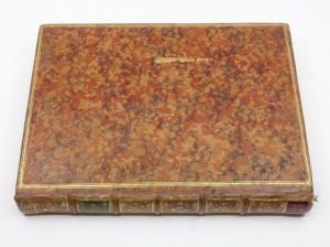 Panckoucke, 1765 ; grand in-4, reliure de l'époque veau porphyre, filets dorés sur les plats, dos à nerfs orné de motifs dorés, pièces rouge et verte, dentelle intérieur et tranches dorées.