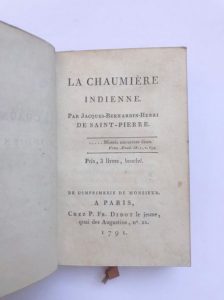 SAINT-PIERRE Jacques-Henri Bernardin de. La Chaumière indienne. Paris, P. Fr. Didot, 1791 ; in-16 de xlviij et 130 p.,