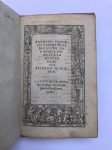 Édition originale de ce petit traité des couleurs. Antonio Telesio en établit un lexique raisonné et propose des réflexions très modernes sur l'univers chromatique. Suivent deux poèmes de l'auteur, « Araneola » (l'araignée) et « Cincidela » (la luciole). Grande marque gravée sur bois à la fin.