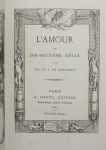Première édition séparée d'une partie de La Femme au XVIIIe siècle (1862). Edmond artiste a fait en sorte qu'elle soit illustrée de façon exquise : frontispice, vignette et cul-de-lampe gravés à l'eau-forte par Émile Boilvin et toutes les pages ornées d'encadrements gravés sur bois par Fortuné Méaulle.