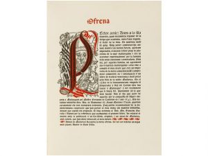 de Mallorca pintado a mano, estampado en corcho y en papel. Enc. en pergamino, hilos dorados en los planos. Ejemplar sobre papel de hilo, edición de 300 ejemplares.