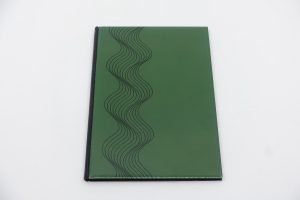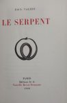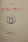 VALÉRY Paul. Le Serpent. Paris, La Nouvelle Revue française, 1922 ; plaquette in-8, reliure ancienne bradel demi-maroquin noir, plats d'un matériau vert orné d'un jeu vertical ondoyant de filets noirs, recouvert de rhodoïd transparent, tête verte, au dos titre à la chinoise en lettres vertes, couverture et dos ([Henri] Mercher).