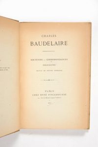 BAUDELAIRE, Charles. Souvenirs - Correspondance - Bibliographie. Suivie de pièces inédites. Paris, René Pincebourde, …