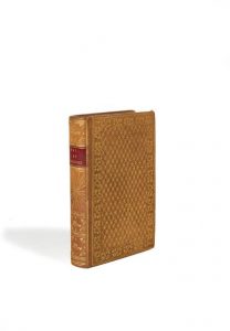 In-12 (121 x 78 mm) de XXXV, 241 pp., 4 planches gravées sur cuivre d'après Moreau Le Jeune et J. Vernet; veau fauve, roulette florale dorée encadrant les plats, décor à croisillon sur les plats, dos lisse, caissons ornés d'un fer spécial à la colombe, tranches dorées (reliure de l'époque par Rosa avec son étiquette au contre plat).