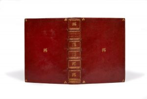 Grand in-4 (258 x 182 mm) d'un frontispice gravé par Nicolas Pitau d'après Jean-Baptiste de Champaigne, 20 ff.n.ch., 503 pp., 2 ff.n.ch., 408 pp., 4 ff.n.ch. dont le dernier blanc; maroquin rouge, plats ornés pièces d'armes de Longepierre, dos à nerfs, caissons ornés de pièces d'armes, roulette sur les coupes, tranches dorées sur marbrure (reliure de l'époque).