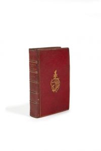 In-8 (193 x 120 mm) de 317 ff.ch., 8 ff.n.ch. Collation: a-z8 A-N8 O10 P8 R4-1 S8, feuillet blanc R4 ôté par le relieur; maroquin rouge à long grain, filet doré d'encadrement, armoiries centrales de