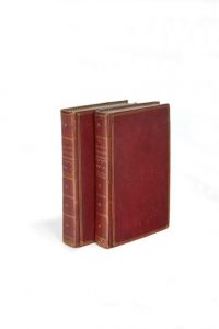 2 volumes in-12 (100 x 870 mm) d'un frontispice gravé (compris dans la pagination), 358 pp., 5 ff.n.ch. pour le volume I; un frontispice gravé, 330 pp., 3 ff.n.ch. pour le volume II; maroquin rouge, triple filet doré d'encadrement, dos lisse orné, roulette sur les coupes, tranches dorées (reliure de l'époque par Derome, sans étiquette).