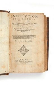 Institution de la religion chrestienne, nouvellement mise en quatre livres: et distinguée par chapitres, en ordre & méthode bien propre: Augmentée aussi de tel accroissement, qu'on la peut presque estimer un livre nouveau. Lyon, Jean Martin, 1565.