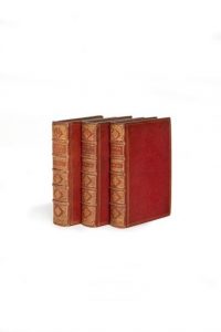 3 volumes in-12 (147 x 95 mm) de 348 ff.ch. pour le volume I; 312 ff.ch. pour le volume II; 296 ff.ch. pour le volume III; maroquin rouge, triple filet doré d'encadrement, dos à nerfs orné, roulette sur les coupes, doublures de maroquin rouge serties d'une roulette dorée, tranches dorées sur marbrure (reliure du XVIIe siècle).