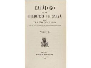 1963. (BIBLIOGRAFIA-FACSIMIL). SALVA Y MALLEN, PEDRO: CATALOGO DE LA BIBLIOTECA SALVA. Valencia: Imprenta de Ferrer de Orga, 1872. [1963]. 2 vol. en 4° mayor. XXX + 706 p., 1 h. ; II: 3 h. + 900 p. Profusamente ilustrado con reproducciones de...