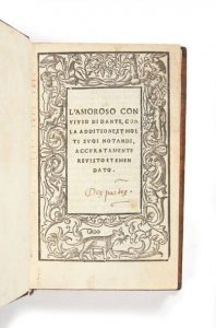 DANTE ALIGHIERI. L'amoroso convivio, con la additione, et molti suoi notandi, accuramente revisto et emendato. …
