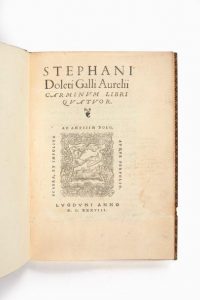DOLET, Etienne. Carminum libri quatuor. Lyon, imprimé par Étienne Dolet chez Sébastien Gryphe, 1538. In-4 (223 …
