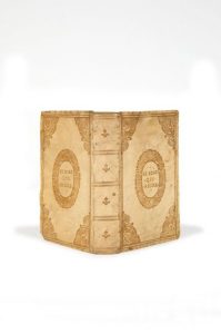 In-8 (173 x 106 mm) de 12 ff.n.ch., 272 ff.ch. [sur 559]; vélin souple doré, double filet doré d'encadrement, large coinçons d'angle, médaillon central portant la devise "IE SCAY QUI NERRE", dos lisse orné, tranches dorées (reliure de l'époque).