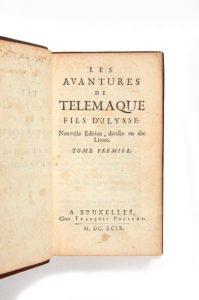 « Première édition avec texte divisé, et un sommaire en tête de chacun des 10 livres » (Tchemerzine), publiée l'année de l'originale. On connaît au moins cinq éditions de 1699 de ce livre qui connut un immense succès de sa première sortie en librairie jusqu'au XXe siècle. A la fois traité de morale à l'intention de ses élèves royaux et roman d'épopée, ce roman provoqua en effet autant la disgrace de Fénelon à la cours que sa célébrité immédate et postérieure.