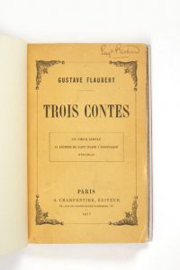 FLAUBERT, Gustave. Trois contes. Paris, Charpentier, 1877. In-12 (178 x 112 mm) de 2 ff.n.ch., 248 pp., 2 ff.n.ch. …