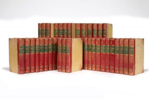 39 volumes in-8 (193 x 119 mm); 79 planches gravées sur cuivre d'après Marillier; demi-veau rouge à coins, chiffre de la tsarine Maria-Féodorovna 'MF' couronné au dos lisse orné, tranches jaunes (reliure russe de l'époque).