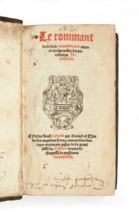 Fort volume in-8 (170 x 99 mm) de 8 ff.n.ch., CCCCIII ff.ch. (mal chiffrés CCCIII), 1 f.n.ch (marque d'imprimeur); veau brun, roulette à froid d'encadrement, dos à nerfs, tranches jaspées (reliure de l'époque).