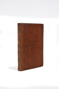 In-folio (283 x 183 mm) d'un frontispice gravé, 3 ff.n.ch., 396 pp., 1 tableau typographique dépliant entre les pp. 40/41; veau brun, double filet à froid d'encadrement, dos à nerfs muet, tranches rouges (reliure anglaise de l'époque).