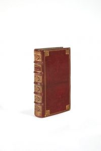 In-12 (160 x 90 mm) de 11 ff.n.ch., 382pp., 1 f.n.ch. (catalogue de libraire); maroquin rouge, triple filet d'encadrement doré, fleuron d'angle, dos à nerfs orné, roulette sur les coupes, tranches dorées sur marbrure (reliure de l'époque).