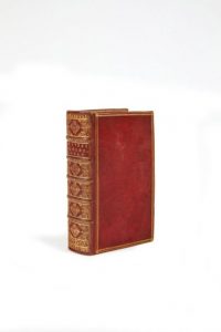 2 parties en 1 volume in-16 (123 x 75 mm) de 16 ff.n.ch., 527 pp.; 175, 32, 127 pp.; maroquin rouge, triple filet dorée d'encadrement, dos à nerfs, caisson richement dorés, roulette sur la coupe, doublure de maroquin rouge dans une roulette dorée d'encadrement, tranches dorées sur marbrure (reliure du XVIIe siècle).