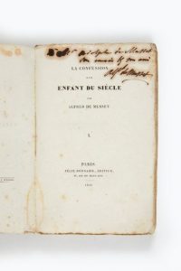 La Confession d'un enfant du siècle. Paris, imprimerie E. Duverger pour Félix Bonnaire, 1836.