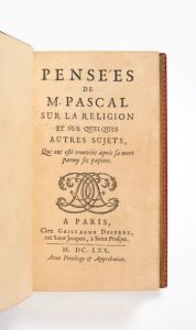 PASCAL, Blaise. Pensées sur la religion et sur quelques autres sujets. Paris, Guillaume Desprez, 1670. In-12 (151 …