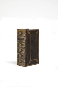 Duseuil, fleurons d'angle composés de petits fers, dos à nerfs orné, caissons avec un petit fer floral et deux oiseaux, roulette sur les coupes, tranches dorées (reliure de l'époque).