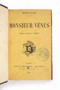 Monsieur Vénus. Préface de Maurice Barrès. Paris, Félix Brossier, 1889.