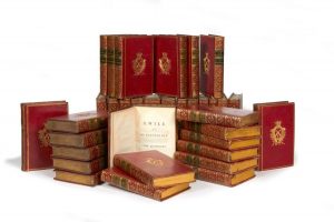 34 volumes in-12 (144 x 92 mm) de 2 ff.n.ch., X, 320 pp., 1 f.n.ch. pour le volume I: 2 ff.n.ch., 391 pp. pour le volume II; 2 ff.n.ch., 360 pp. pour le volume III; 2 ff.n.ch., 396 pp. pour le volume IV; 2 ff.n.ch., 356 pp. pour le volume V; 2 ff.n.ch., 331 pp. pour le volume VI; 2 ff.n.ch., 338 pp. pour le volume VII; 2 ff.n.ch., 355 pp. pour le volume VIII; 2 ff.n.ch., 339 pp.
