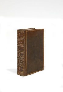 In-8 (178 x 104 mm) de 36 ff.n.ch (dont le titre dans un bel encadrement grave sur bois, et le feuillet blanc u2), 728 pp., 22 ff.n.ch., grand tableau depliant; maroquin olive, triple filet dore d'encadrement, dos a nerfs orne, roulette sur les coupes, tranches dorees (reliure du XVIIIe siècle).