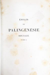 BALLANCHE (Pierre-Simon). Essais de palingénésie sociale. Paris, Imprimerie de Jules Didot aîné, 1827-1829. 2 volumes in-8, demi-veau brun, dos orné, tranches marbrées (Vuiton). Caillet, n°669. Édition originale du plus important ouvrage...