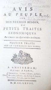 BAUDEAU (l'abbé Nicolas). Avis au peuple sur son premier besoin, ou Petits traités économiques. Par l'Auteur des Éphémérides du Citoyen. Premier traité sur le commerce des bleds. Amsterdam, Et se trouve à Paris, Hochereau, Desaint, Lacombe,...