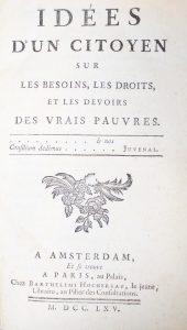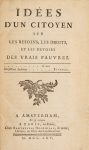 BAUDEAU (l'abbé Nicolas). Idées d'un citoyen sur les besoins, les droits, et les devoirs des vrais pauvres. Amsterdam, Et se trouve à Paris, BarthélemiHochereau, 1765. 2 parties en un volume in-8, vélin rigide, double filet doré, dos lisse...